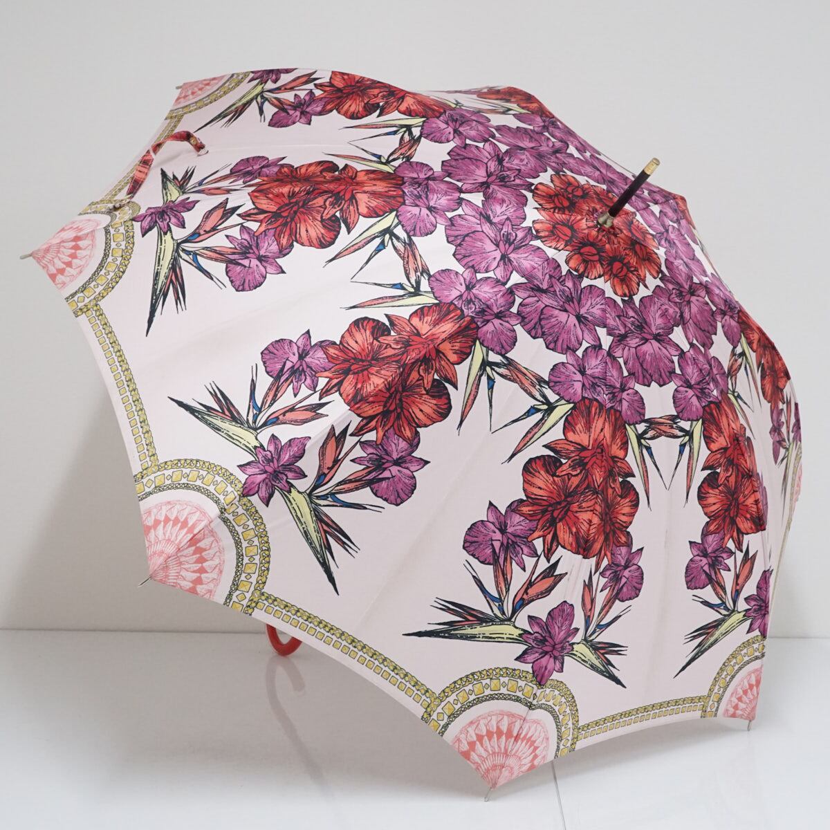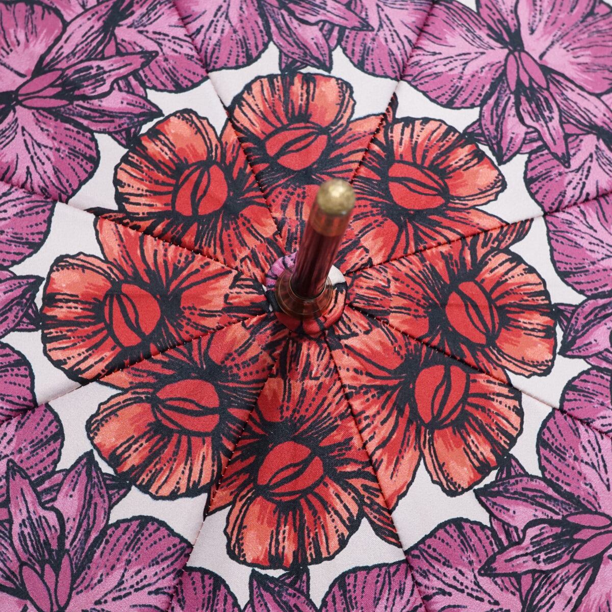 傘一面に広がるフラワー模様が華やかでエレガントなデザインです。