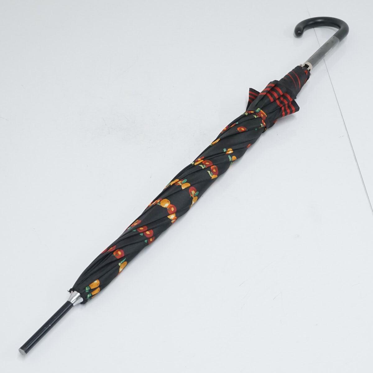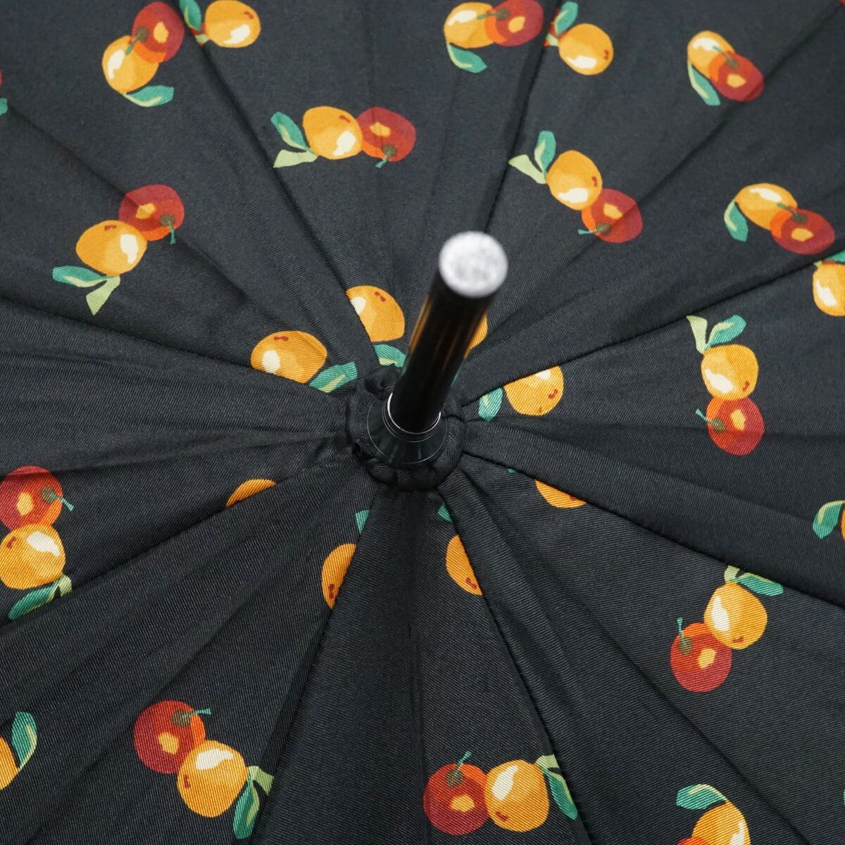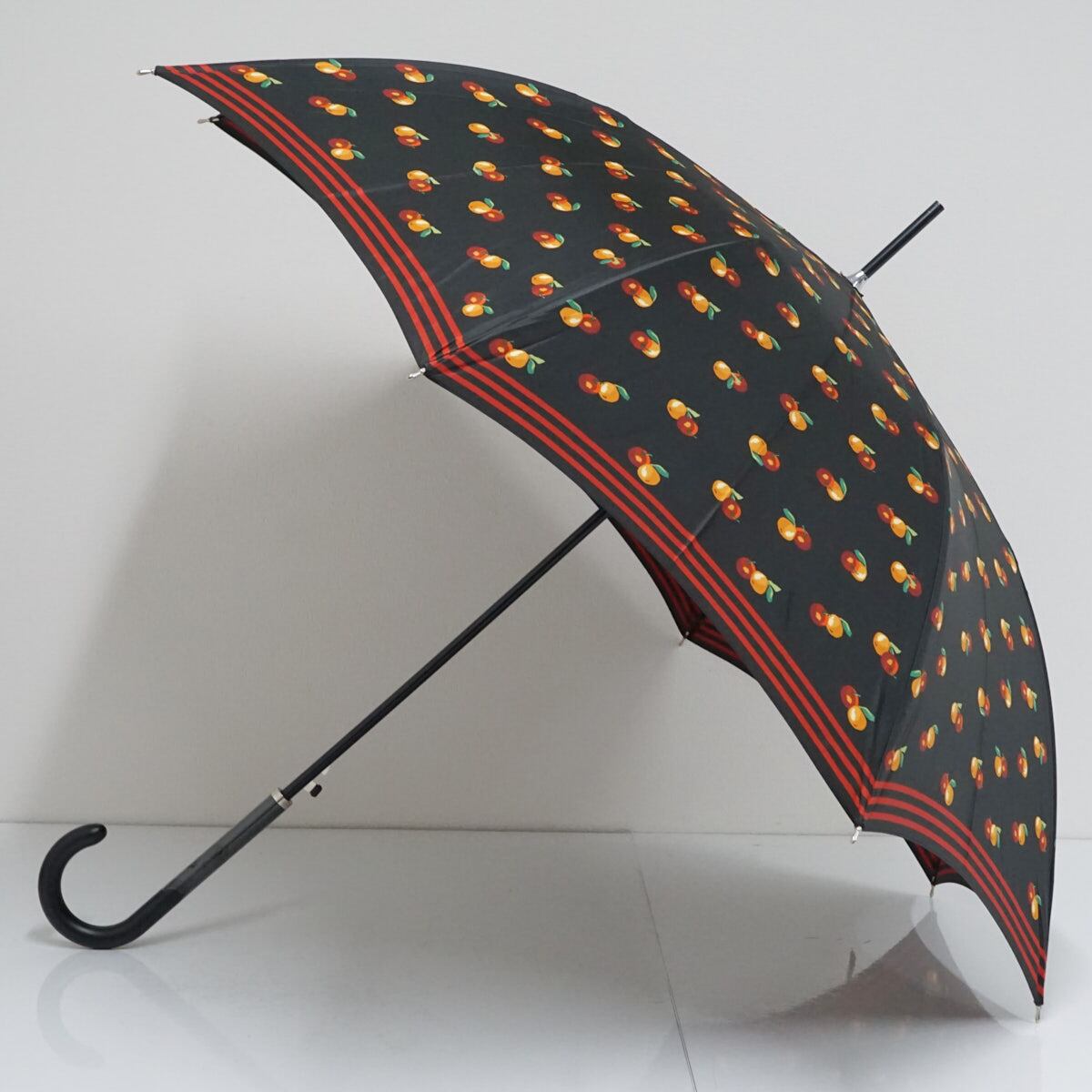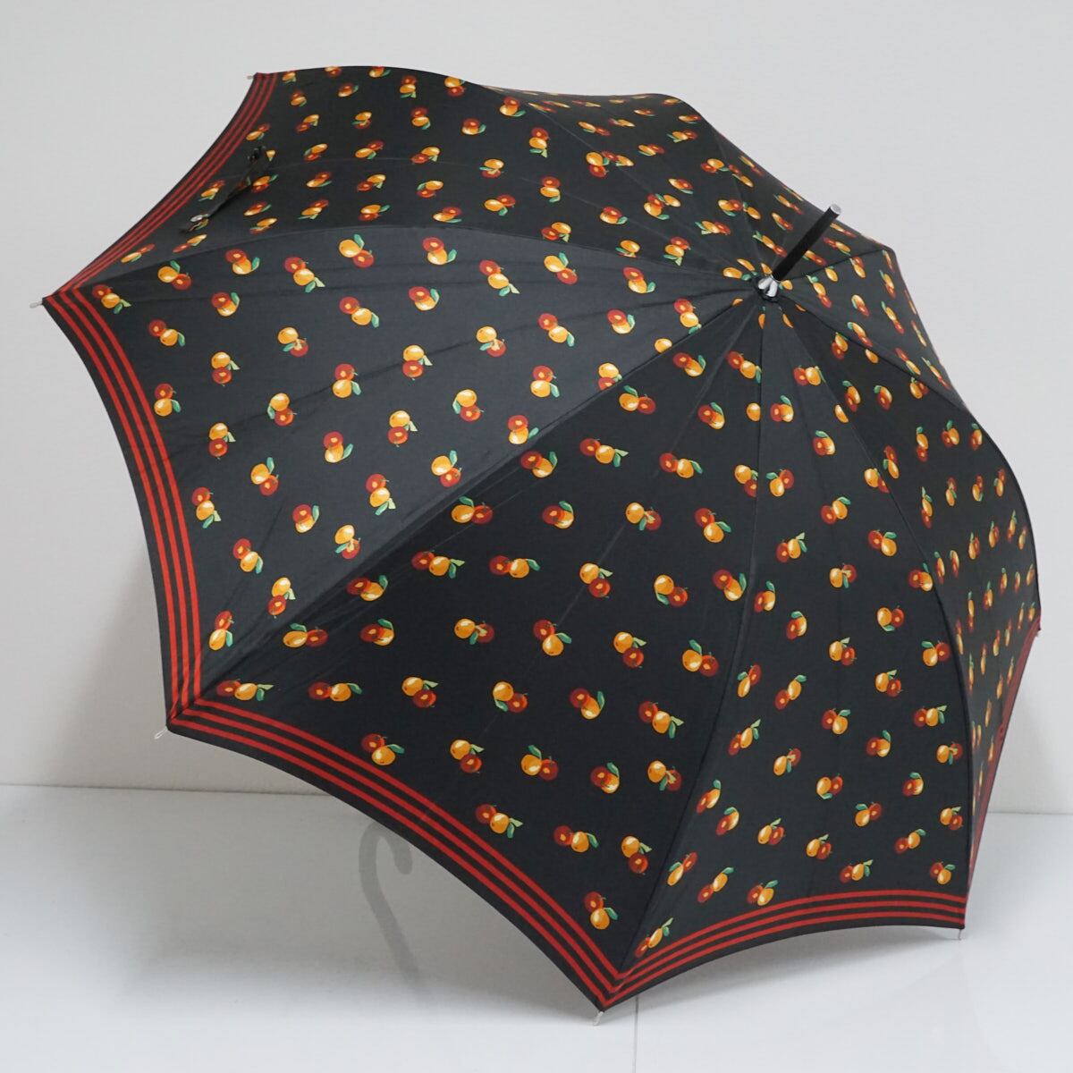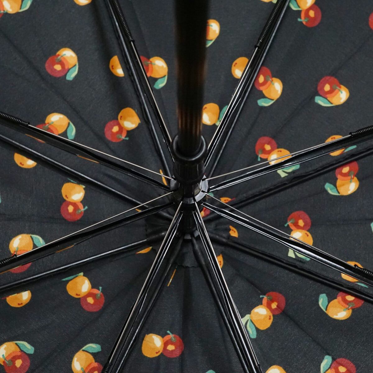 ブラックの生地にオレンジとリンゴを描いた可愛らしい傘です。