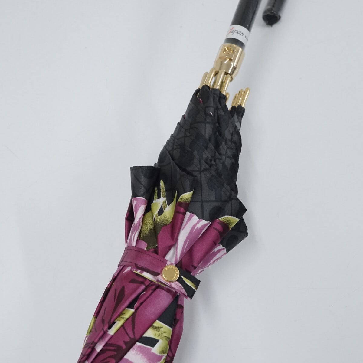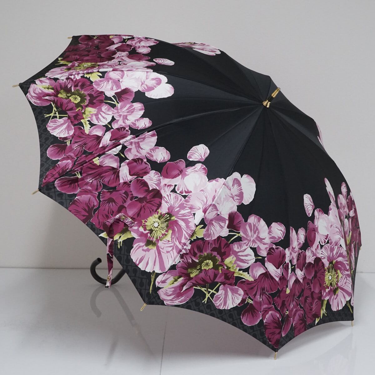 傘 GHERARDINI ゲラルディーニ USED超美品 ブラック パープル 10本骨 多間 ブランド フラワー 60cm S2045