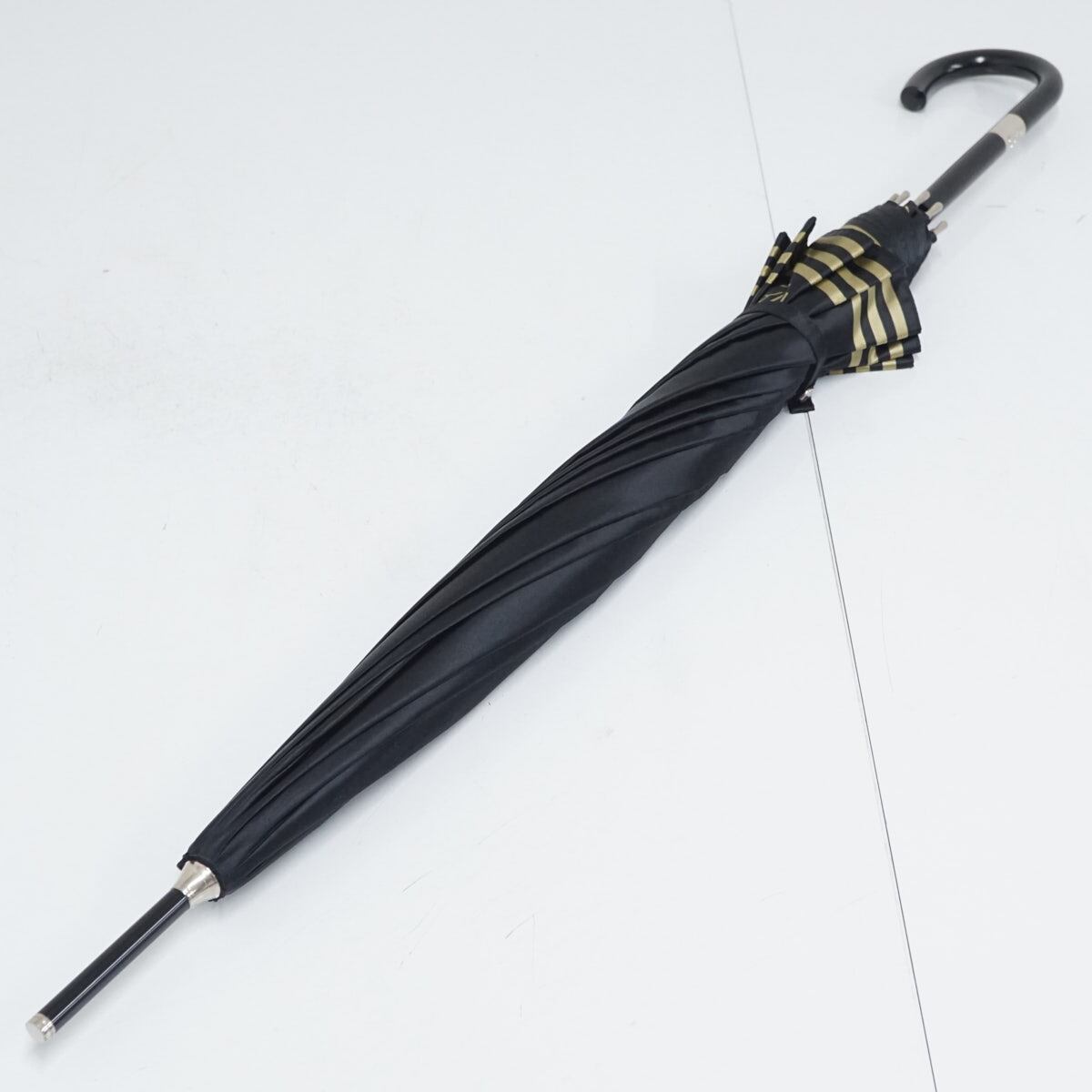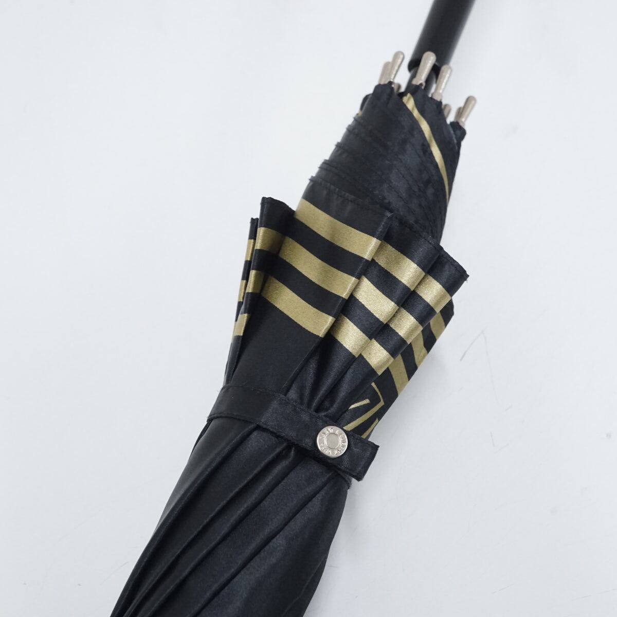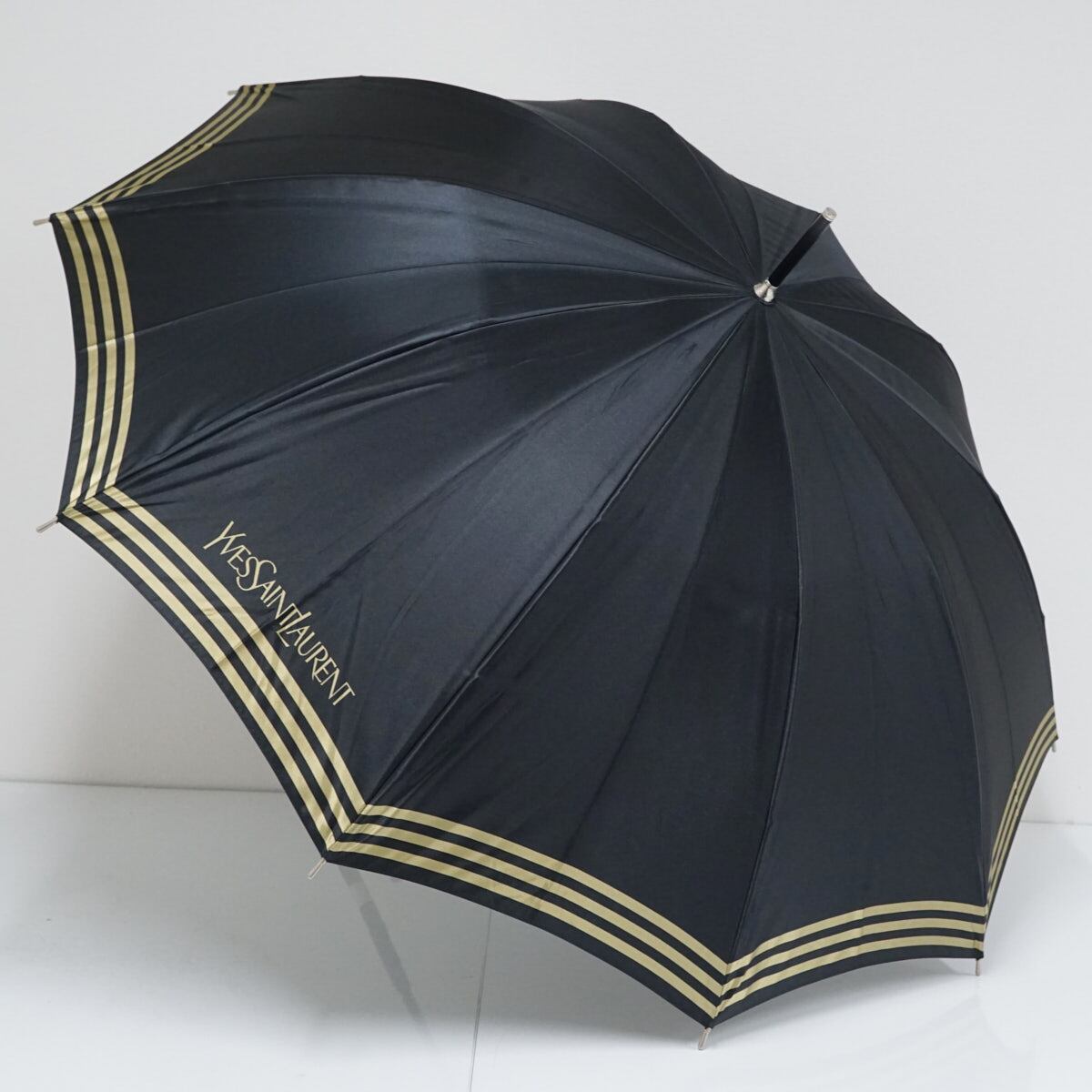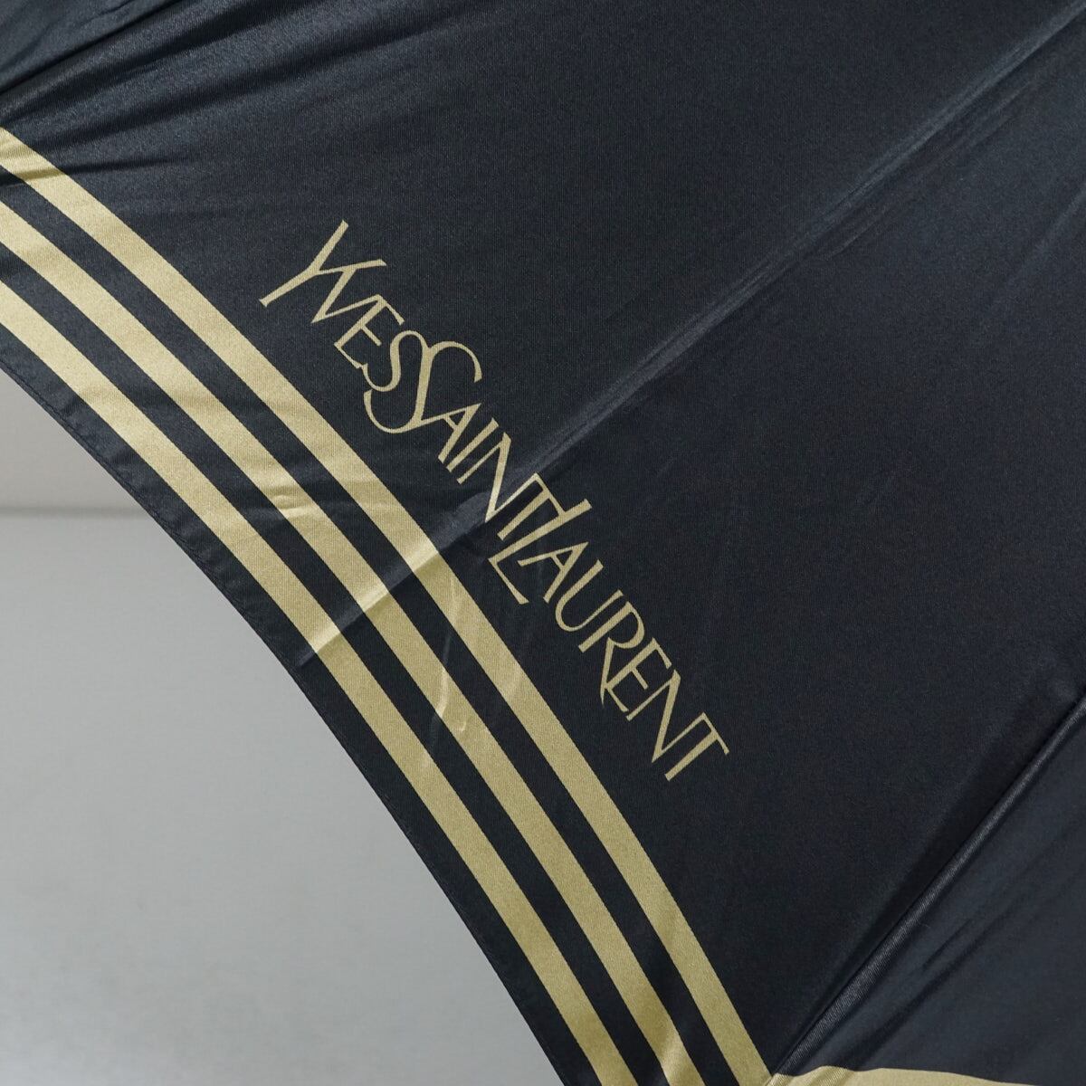 YSL イヴサンローラン 高級傘 USED美品 ロゴ ブラック ゴールド ボーダー エレガント グラス骨 58cm S2058