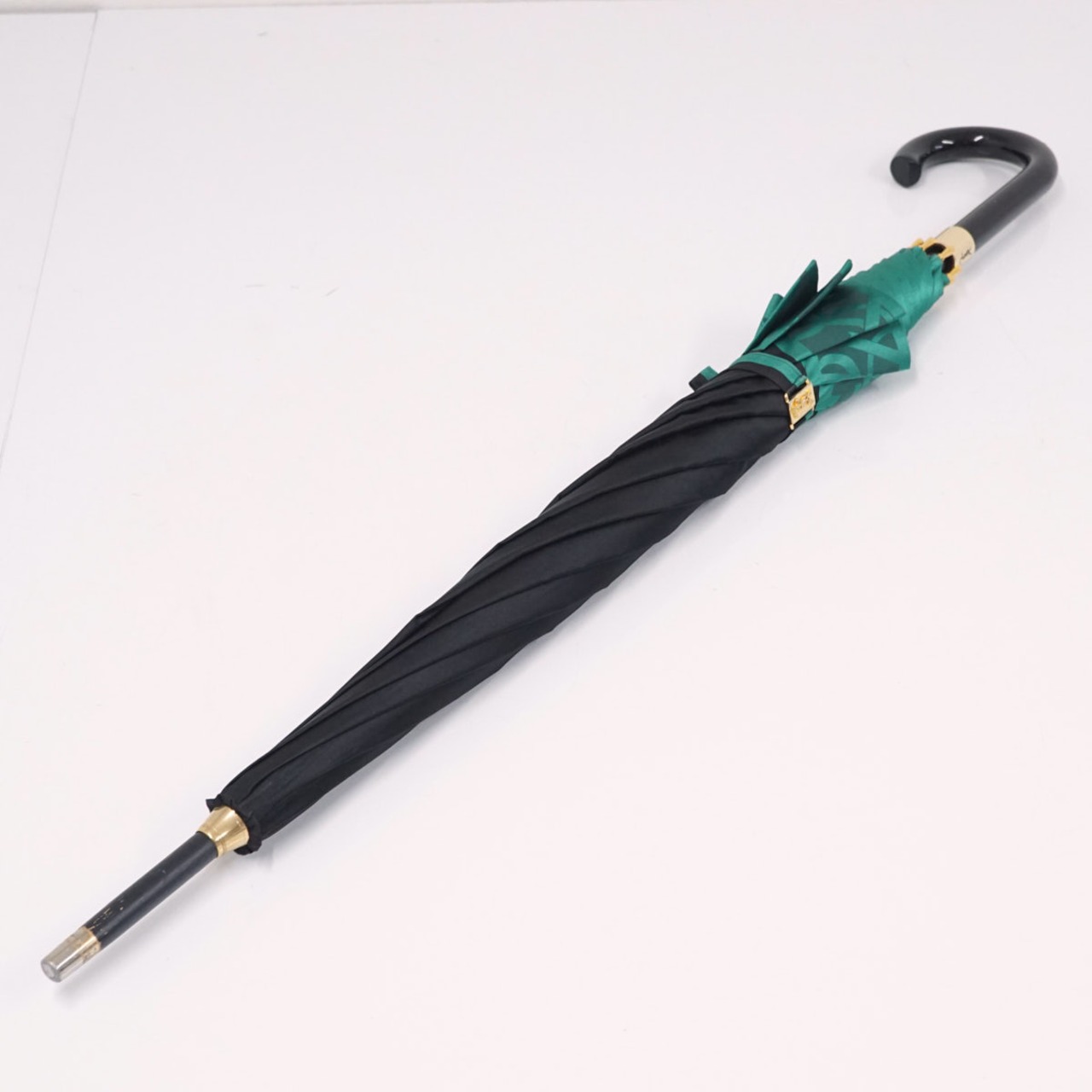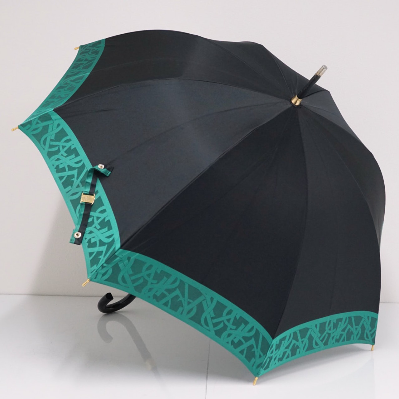 YSL イヴサンローラン 高級傘 USED美品 ロゴ ブラック グリーン エレガント グラス骨 60cm S2059