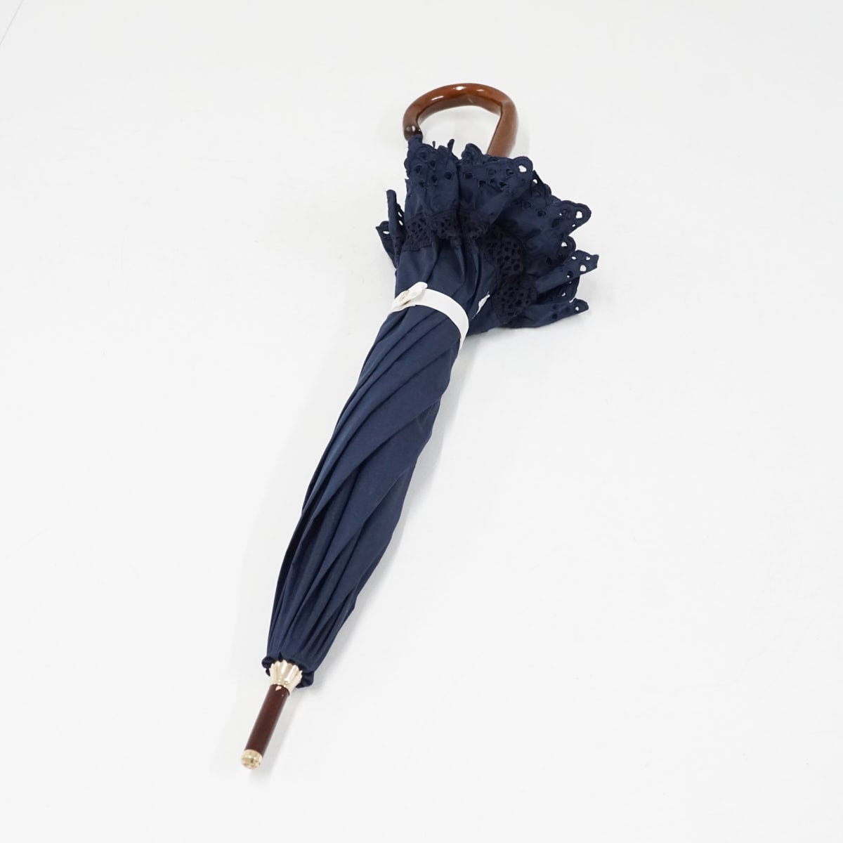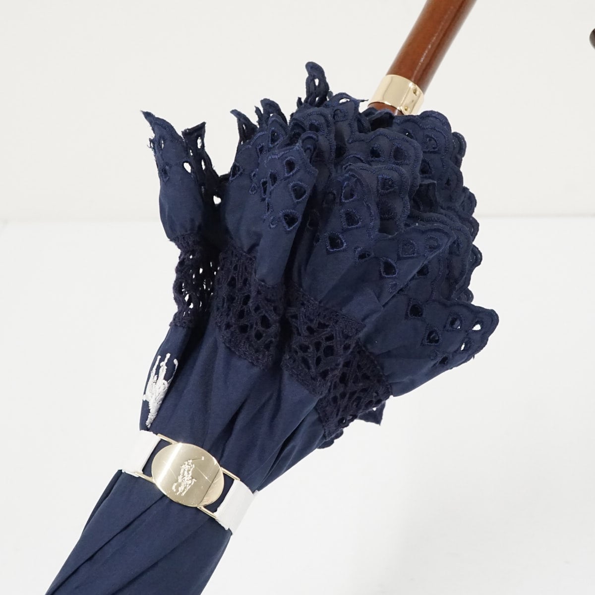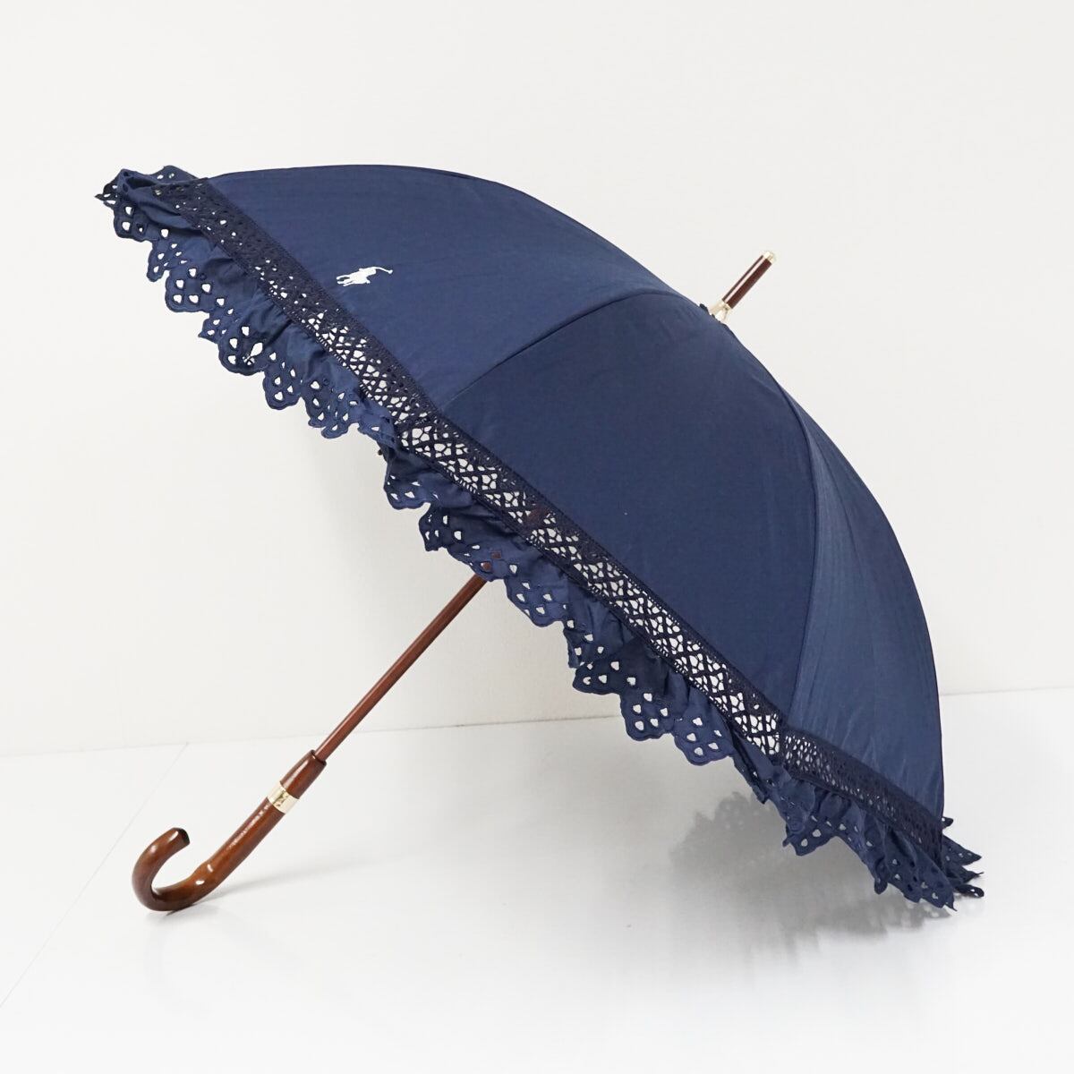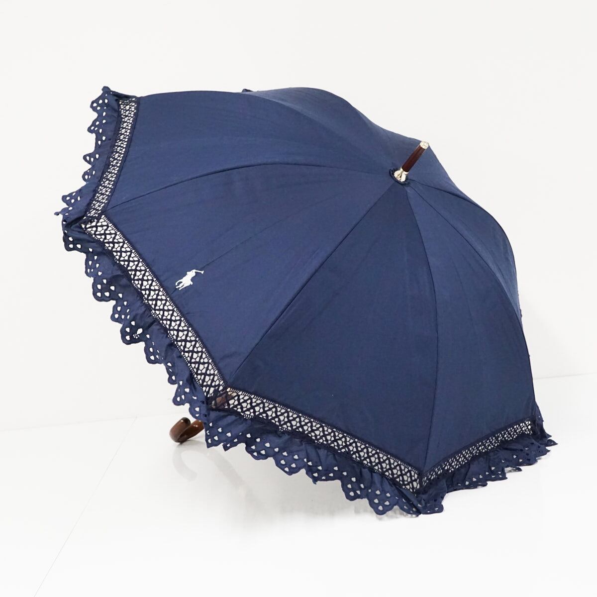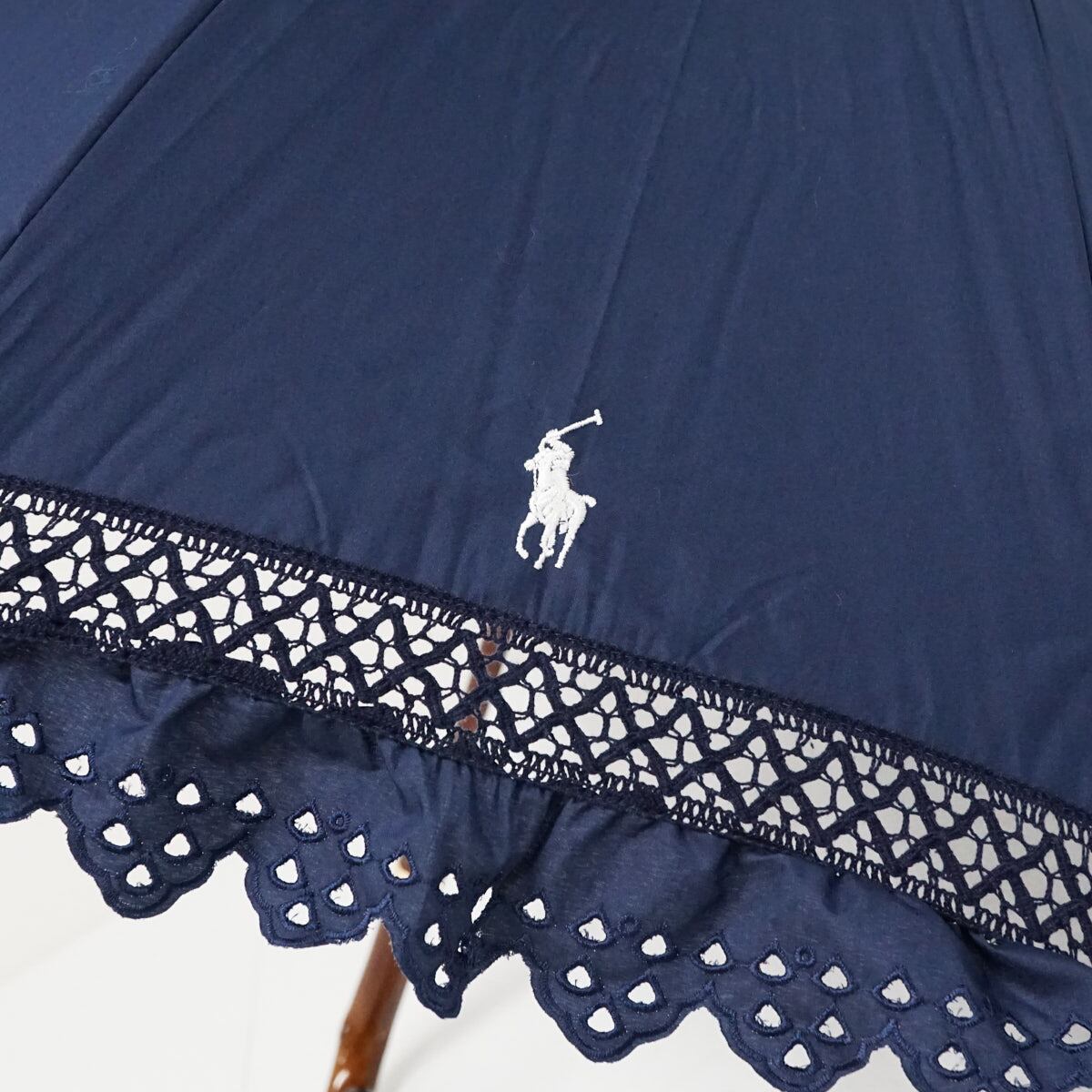 日傘 POLO RALPH LAUREN USED美品 エンブフリル ネイビー スカラップレース ポロラルフローレン 晴雨兼用 遮光 UV 47cm S3493