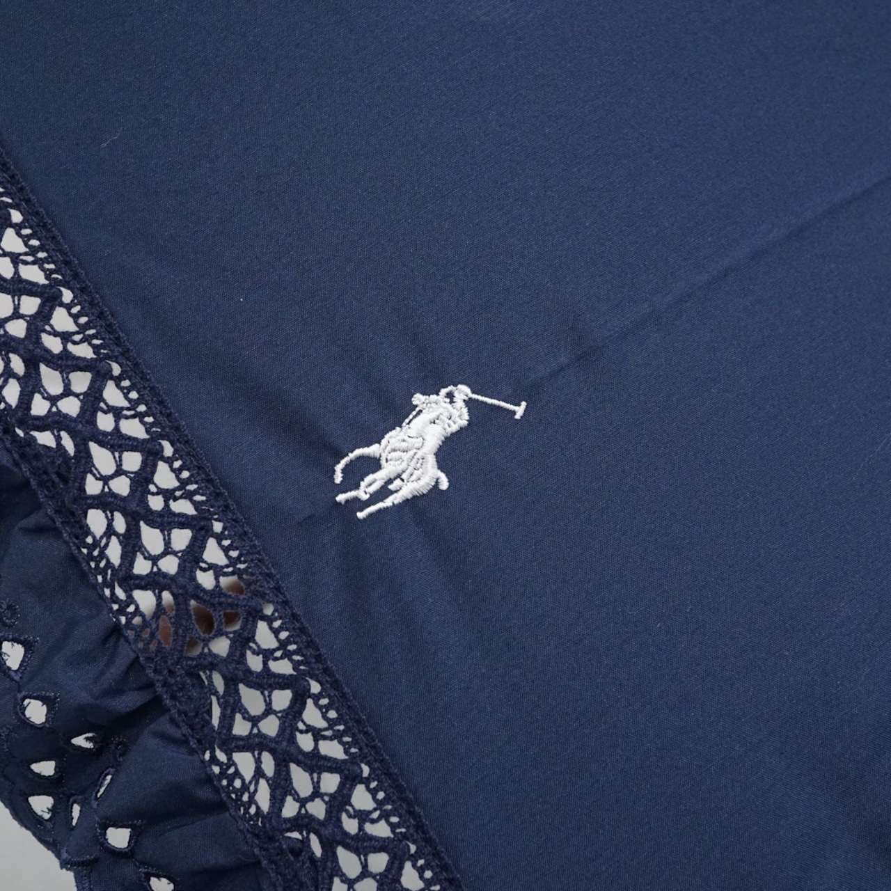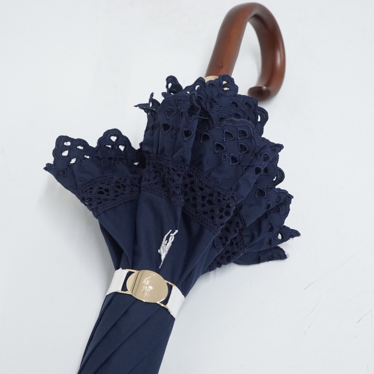 晴雨兼用日傘 POLO RALPH LAUREN ポロラルフローレン USED美品 エンブフリル ネイビー スカラップレース 遮光 遮熱 UV 47cm S2061