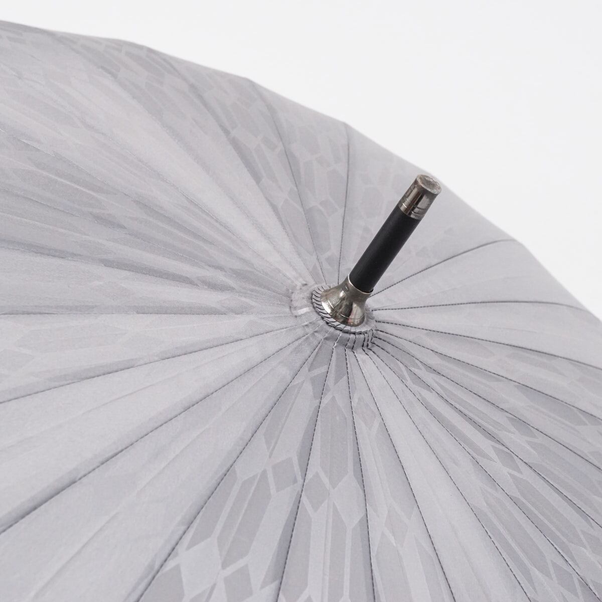 mabu マブ 24本骨傘 USED美品 銀×矢羽根 和柄 江戸切子 和モダン レトロ 多間 グラス骨 男女兼用 グレー 60cm 即日発送 A2668
