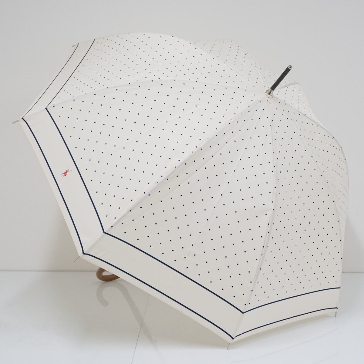 Polo Ralph Lauren ポロラルフローレン 傘 USED美品 ドット アイボリー ロゴ ブランド 高級 ジャンプ 60cm S2067