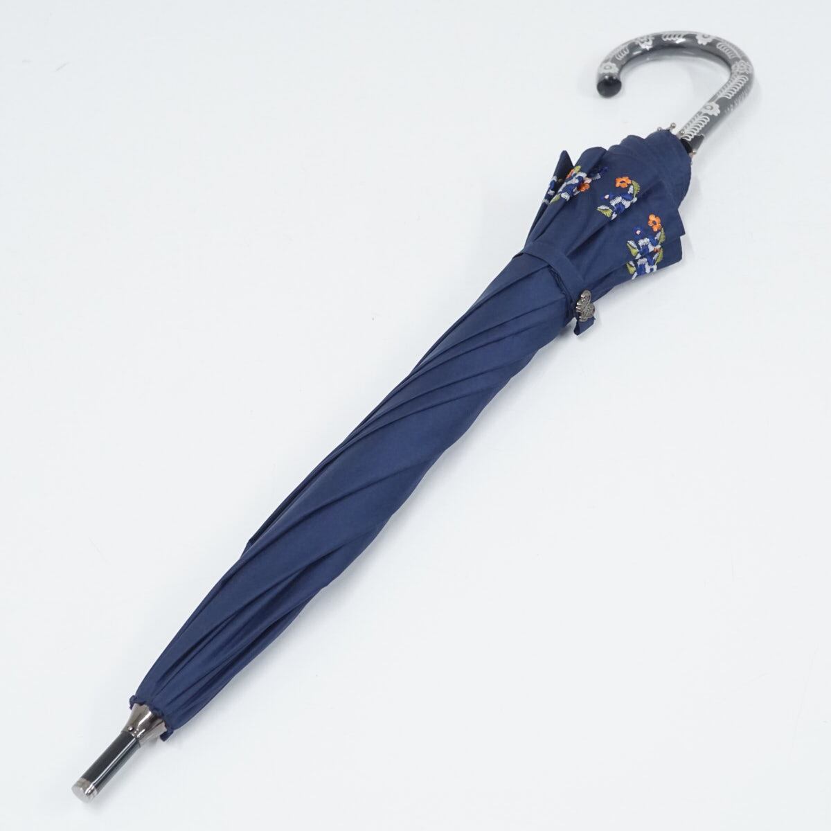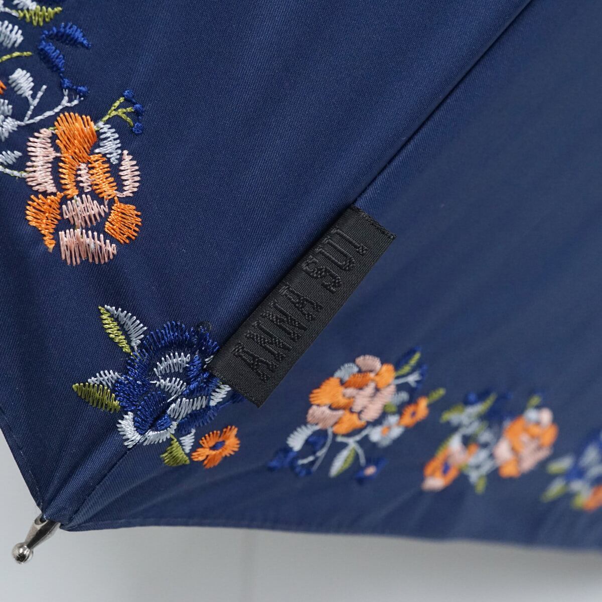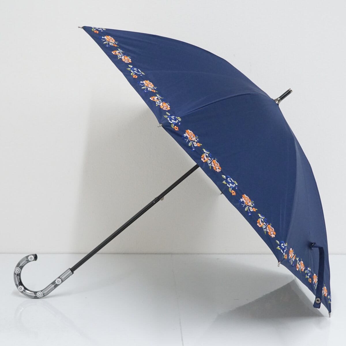 グレーの生地にリゾートのような刺繍を施したかわいい傘です。