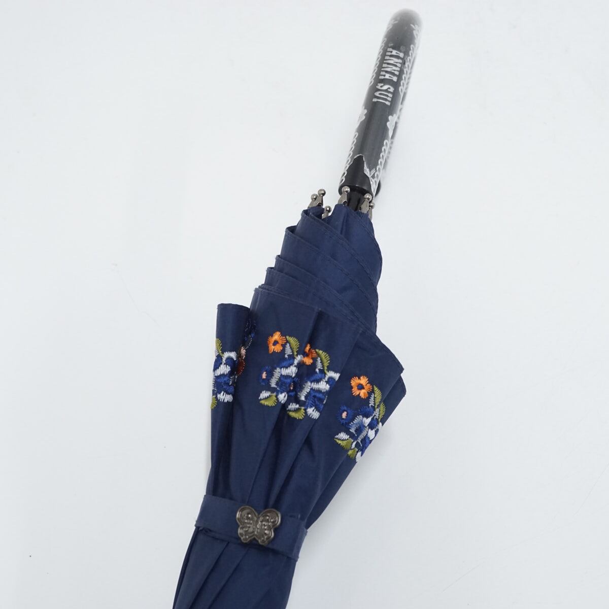 ANNA SUI アナスイ 晴雨兼用日傘 USED美品 東レ サマーシールドLi フラワー ネイビー 遮光 UV グラス骨 47cm S2069