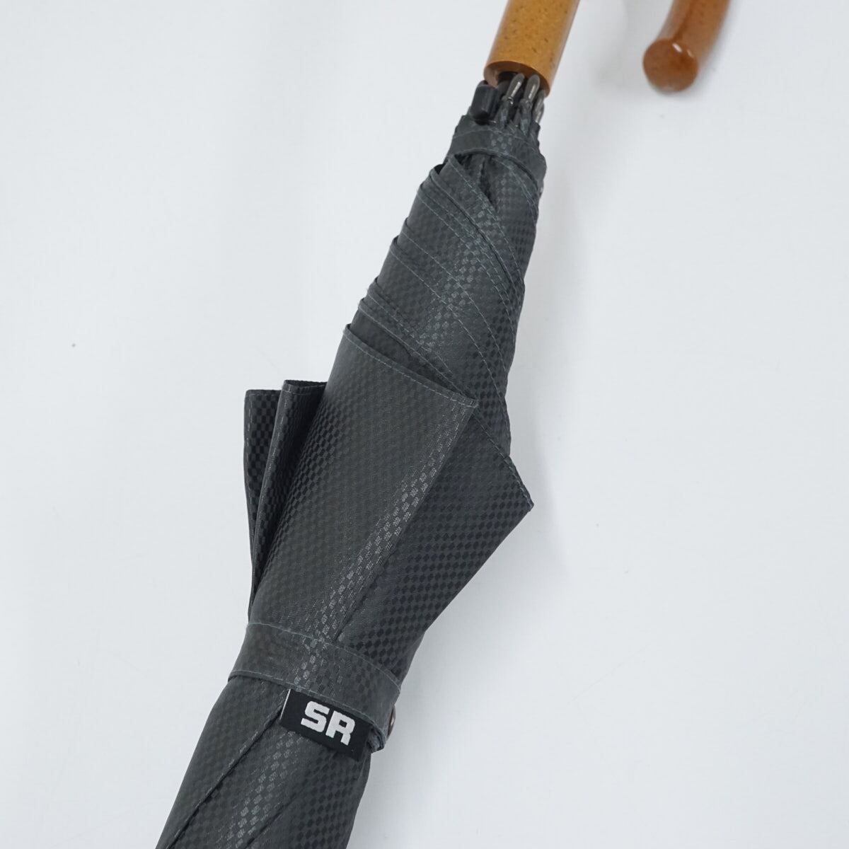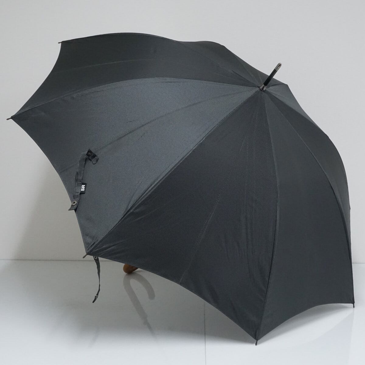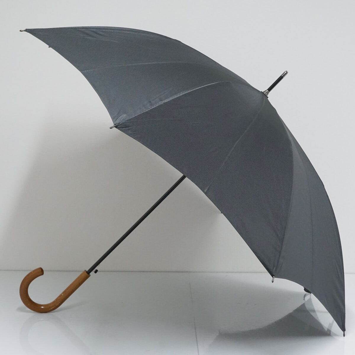 細かなチェックが織り込まれたブラックの生地が、大人っぽくスタイリッシュな傘です。