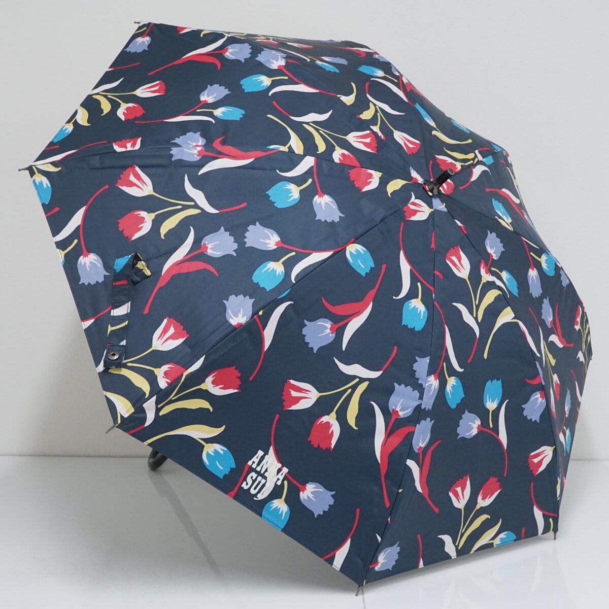 晴雨兼用日傘 ANNA SUI アナスイ USED美品 ネイビー チューリップ カラフル ブランド おしゃれ UV 50cm A2080