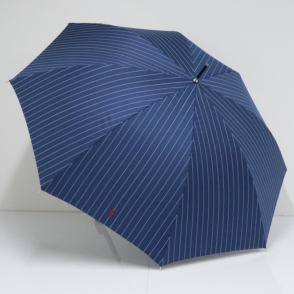 傘 Polo Ralph Lauren ポロラルフローレン USED美品 ストライプ ネイビー ポロ刺繍 ジャンプ 紳士傘 大判 65cm S2082