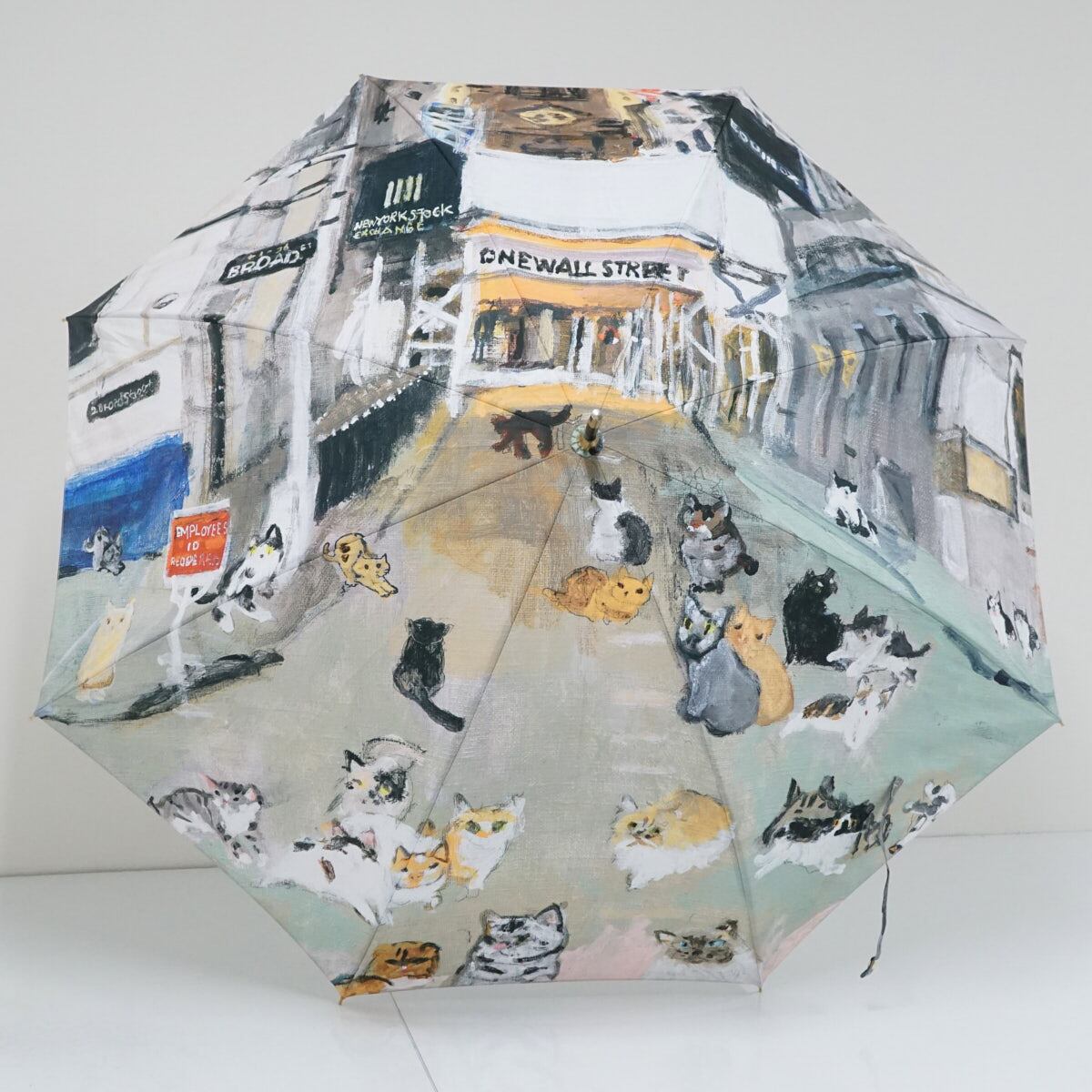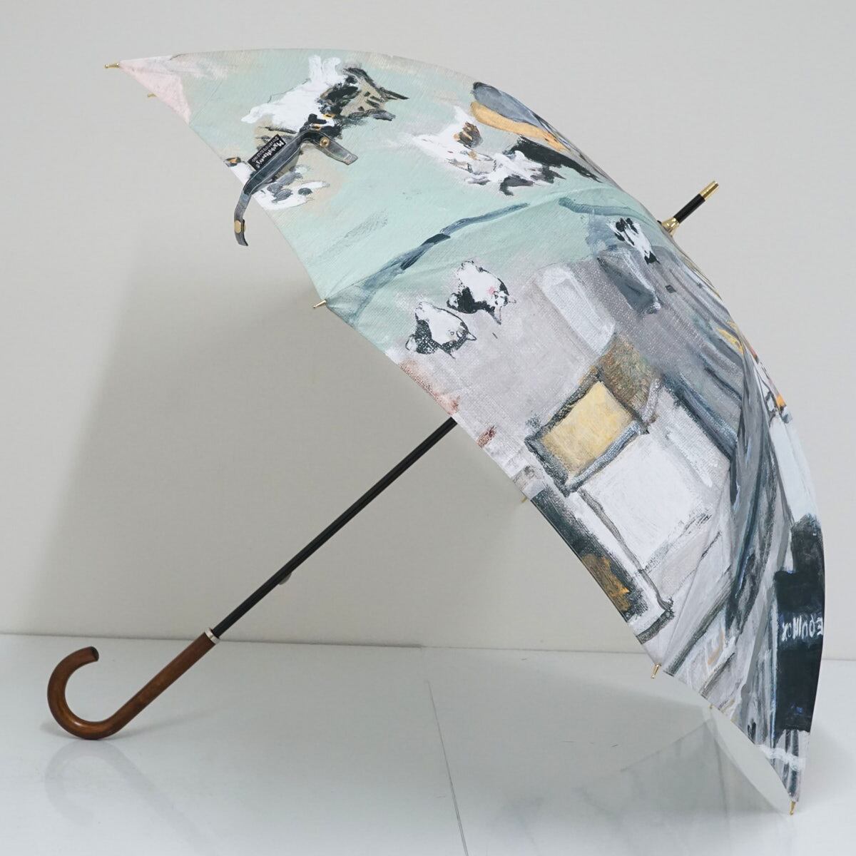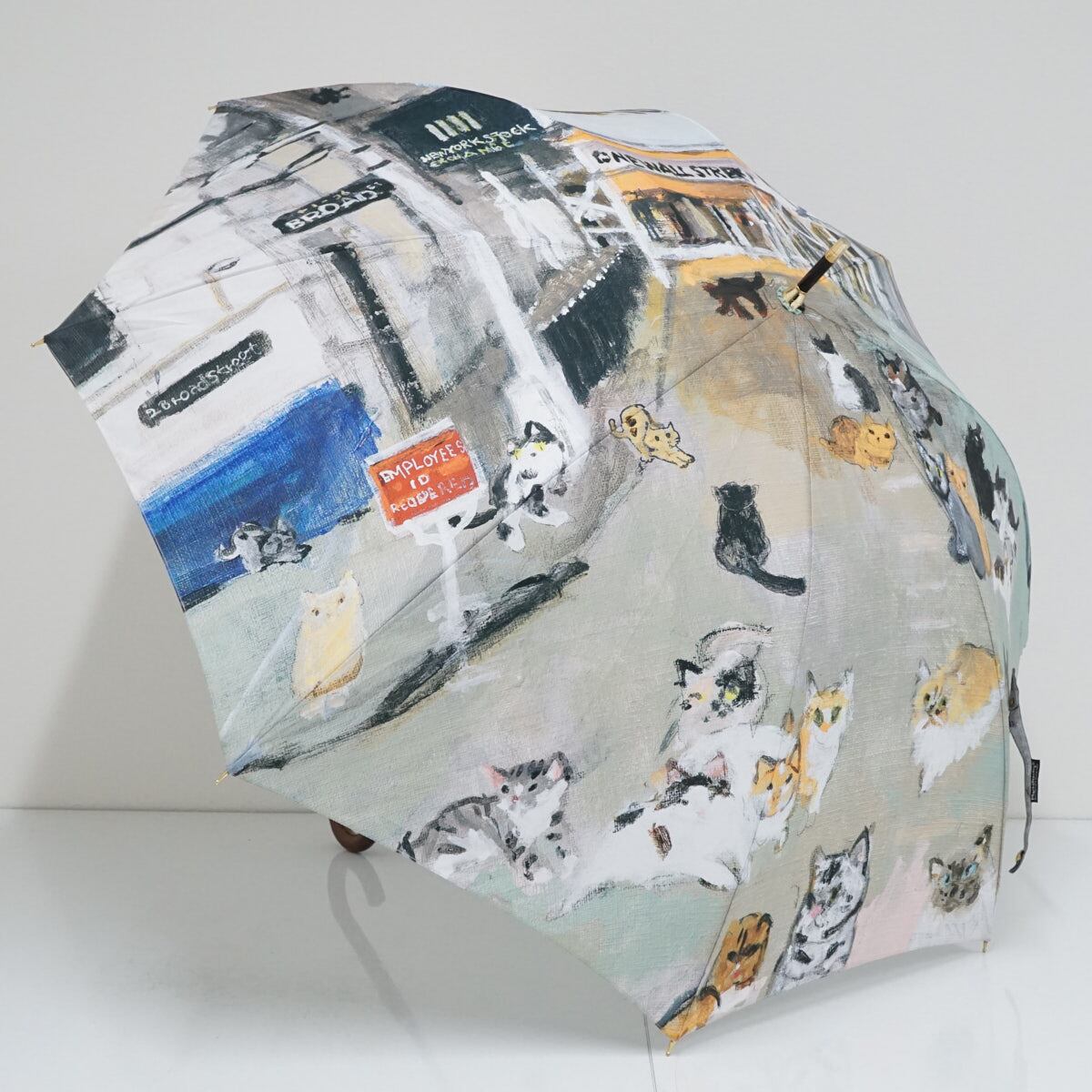 傘 Manhattaner’s マンハッタナーズ USED美品 ねこ 猫 「2020年教会への道」58cm グラス骨 軽量 S2087