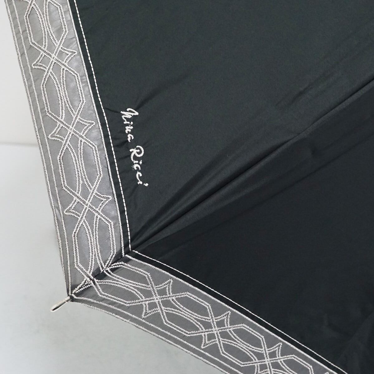 日傘 NINA RICCI ニナリッチ USED美品 サマーシールドLII 晴雨兼用 刺繍 ブラック UV 遮光 遮熱 グラス骨 50cm S2089