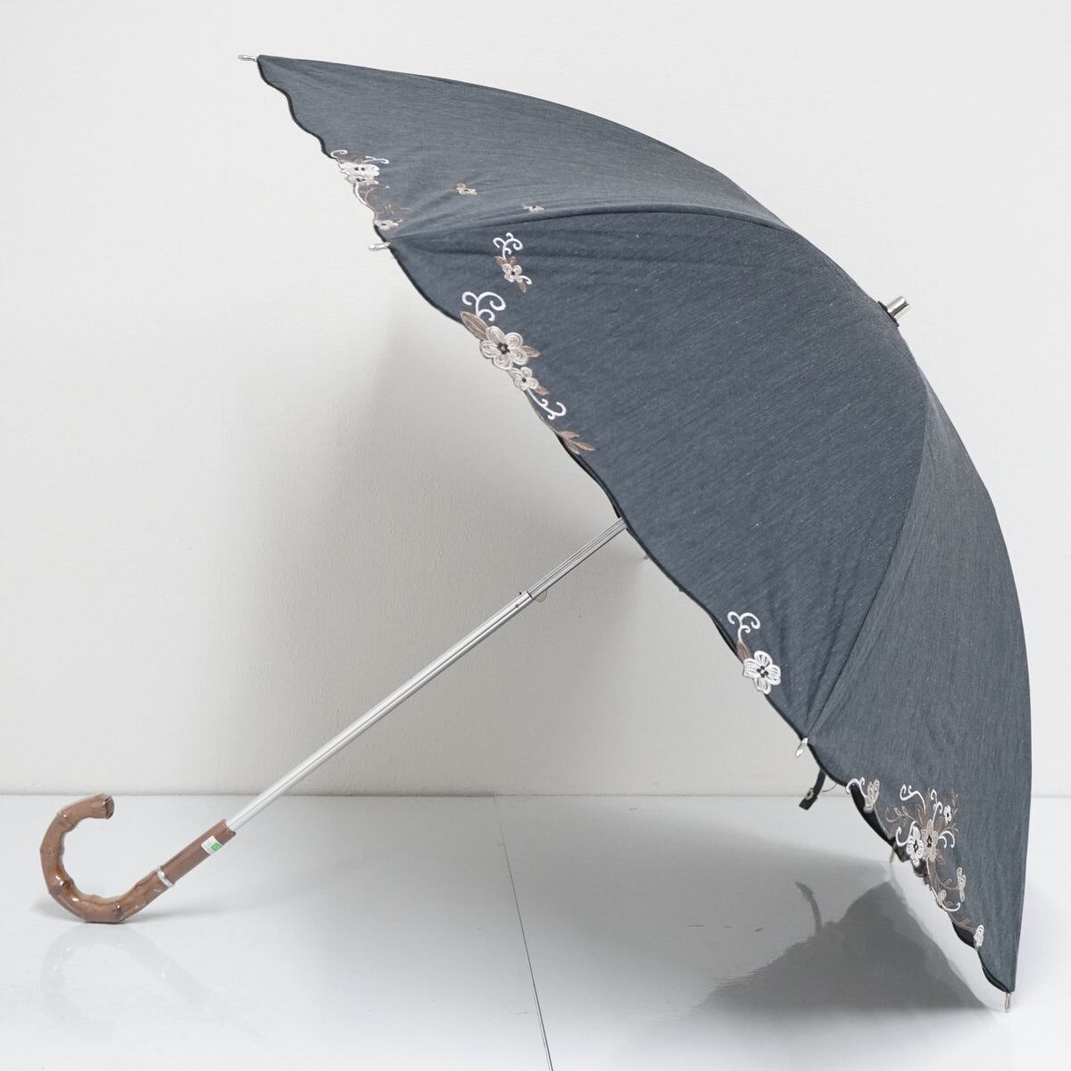 晴雨兼用日傘 AURORA オーロラ サマーシールドLi USED超美品 フラワー刺繍 グラス骨 UV 遮光 遮熱 50cm S2096