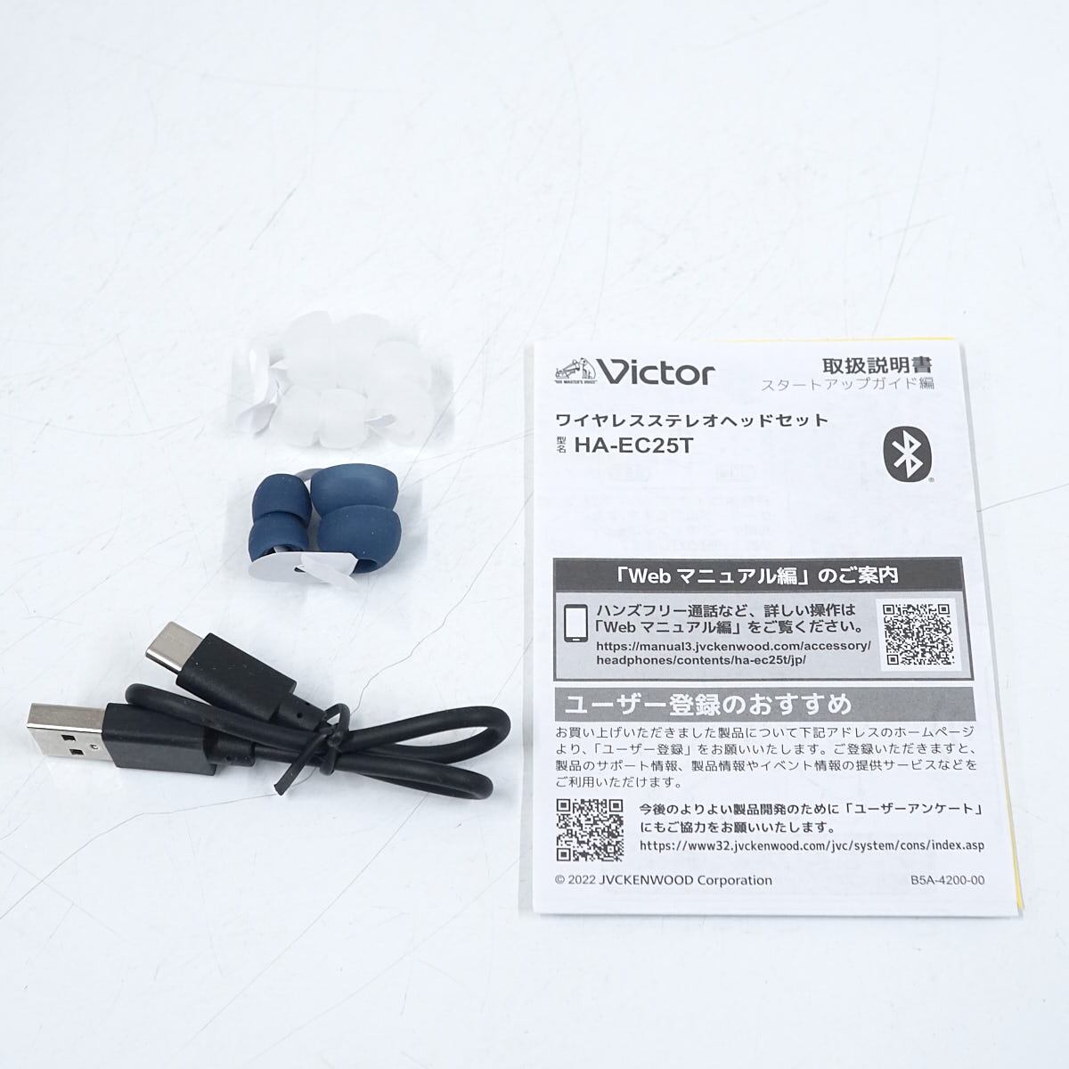 JVC ケンウッド HA-EC25T 完全ワイヤレスイヤホン USED超美品 イヤーフック 防水 IPX5 スポーツ 小型 軽量 マイク 完動品 V1210