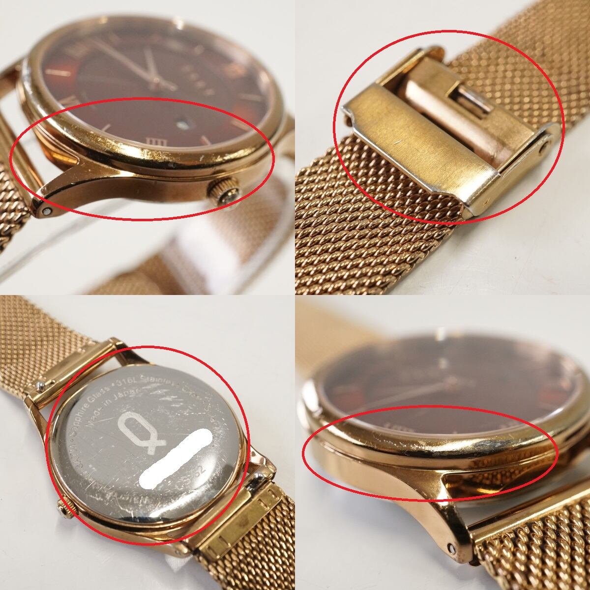 ※ケース、ベルト、裏蓋などにキズやスレ、塗装の剥げがあります。(一部を画像にてご確認ください。)
