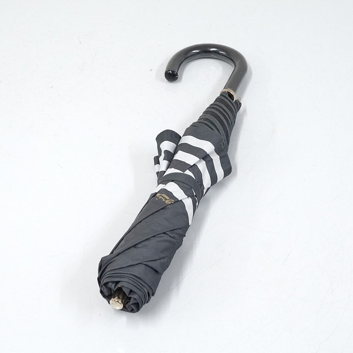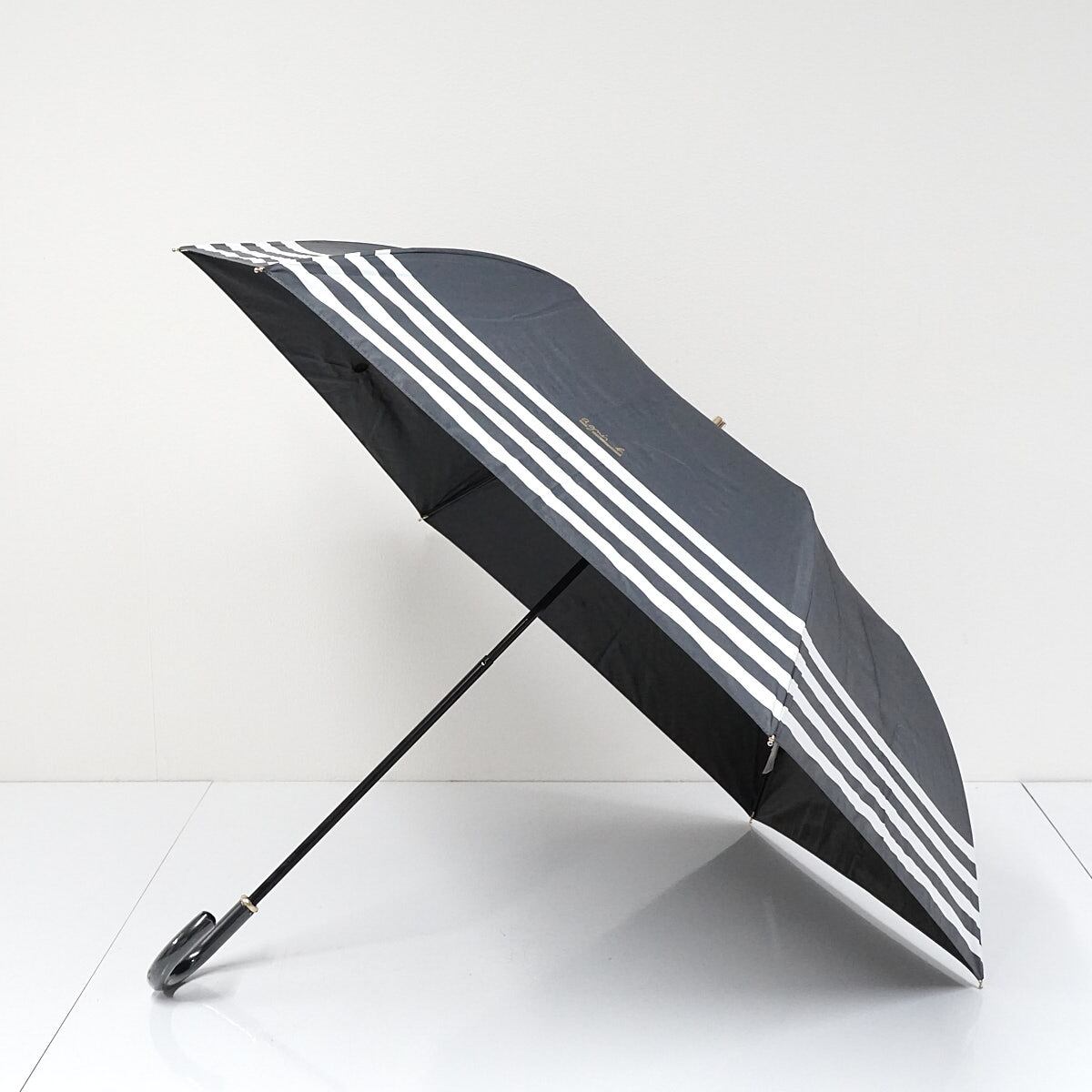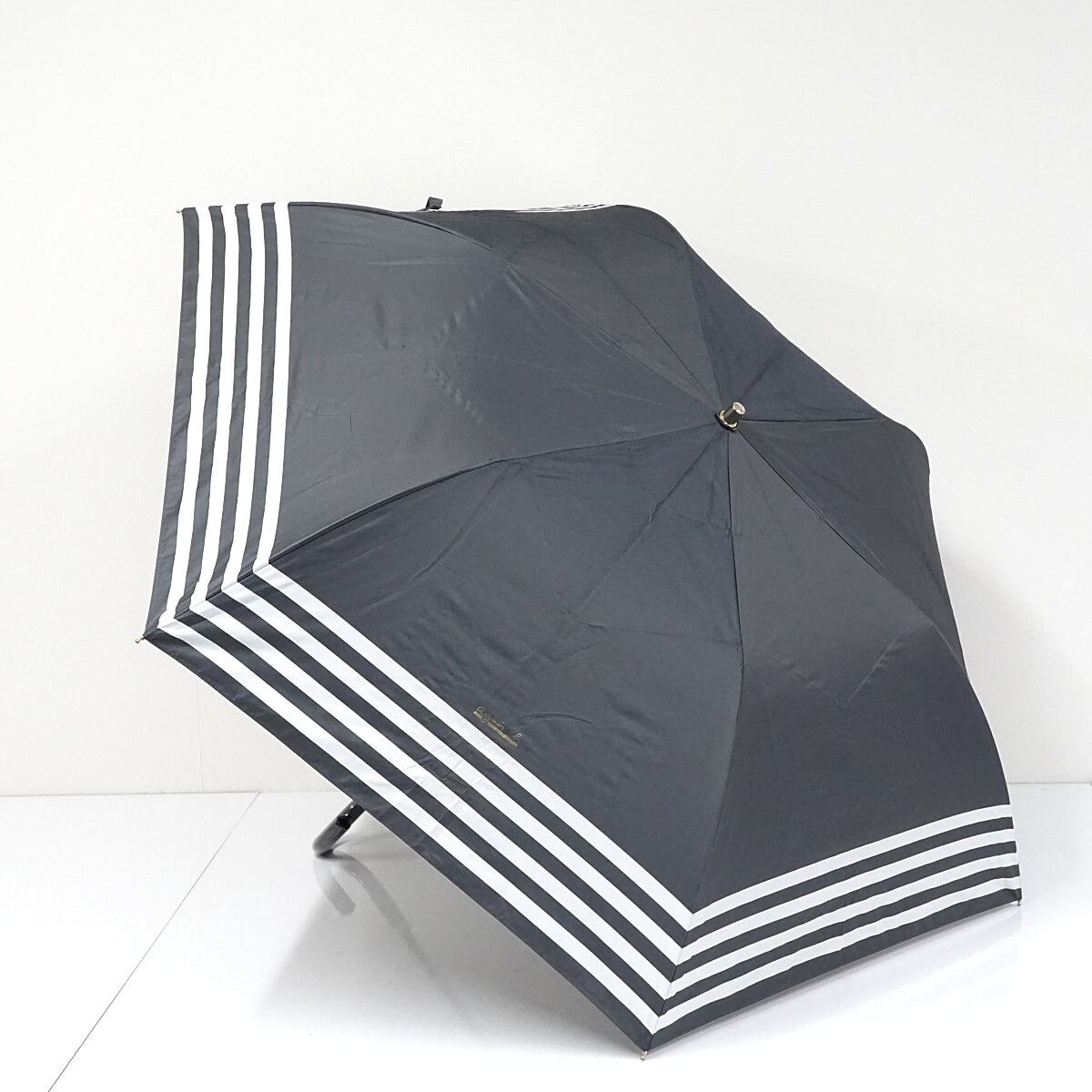 折りたたみ日傘 agnes b. アニエスベー USED品 晴雨兼用 ボーダー ロゴプリント グレー シンプル UV 55cm FA8777