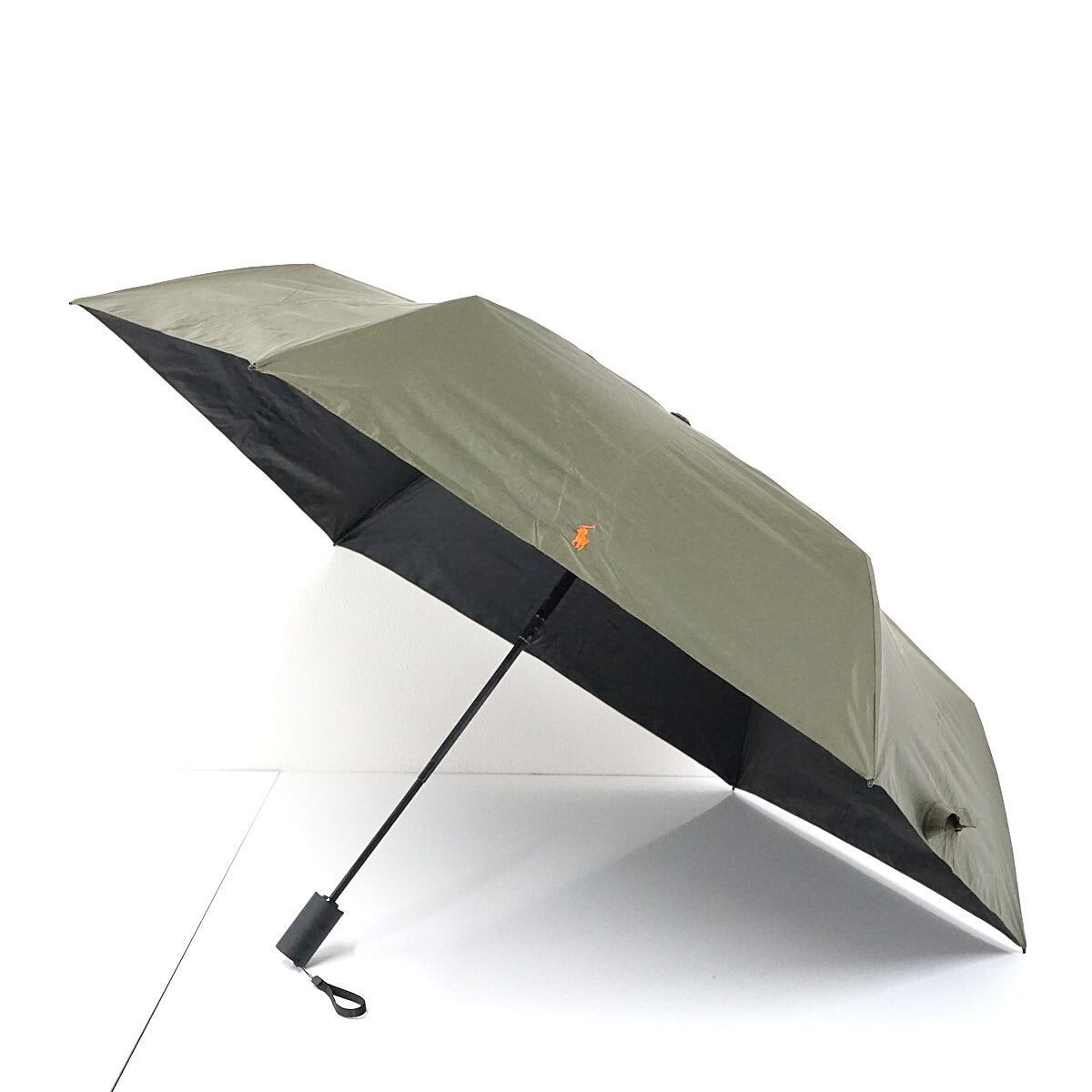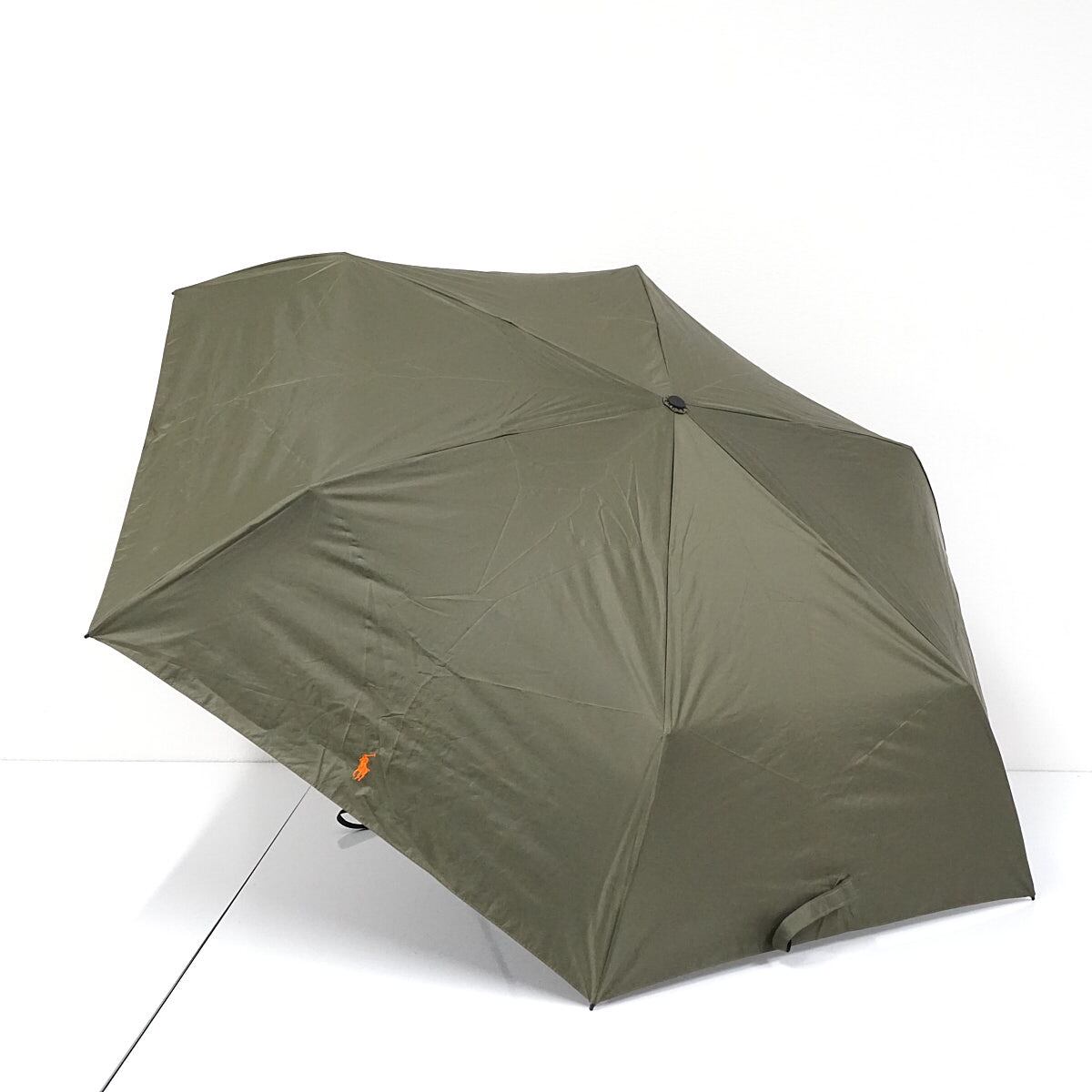 折りたたみ日傘 POLO RALPH LAUREN ラルフローレン USED美品 一級遮光 ポロポニー刺繍 カーキ シンプル 自動開閉 晴雨兼用 UV 55cm FA8782