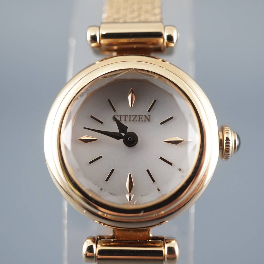 ころんとした形に、華奢な佇まいが魅力のシチズンの腕時計です。