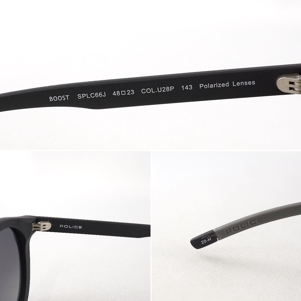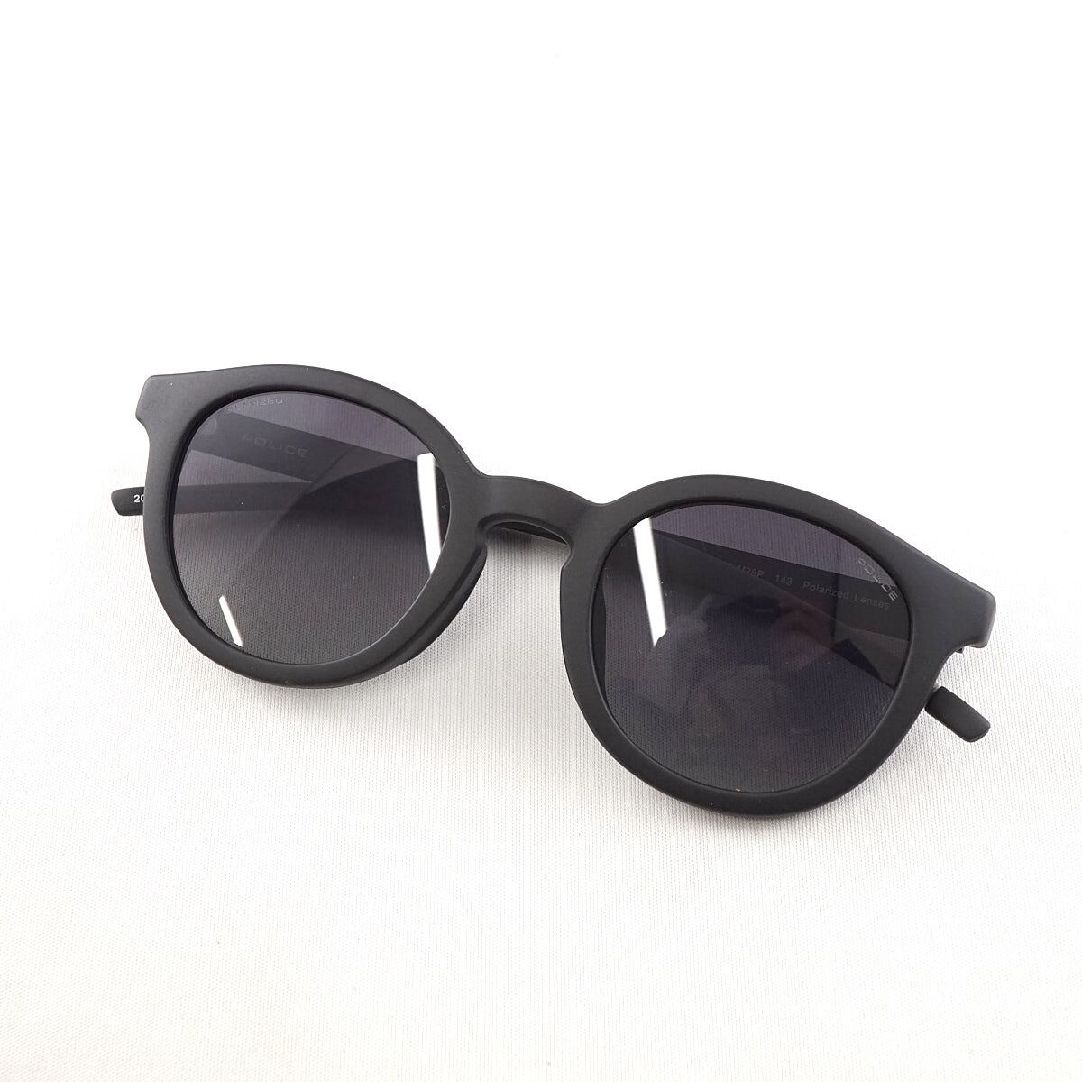 偏光サングラス POLICE ポリス USED美品 SPLC66J U28P ブラックマット シンプル ボストン ユニセックス アイウェア 中古 X6622