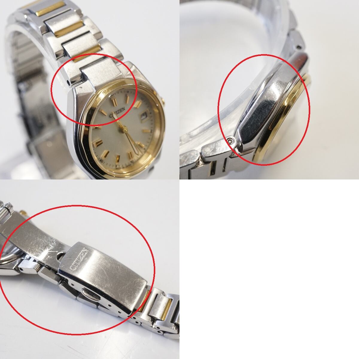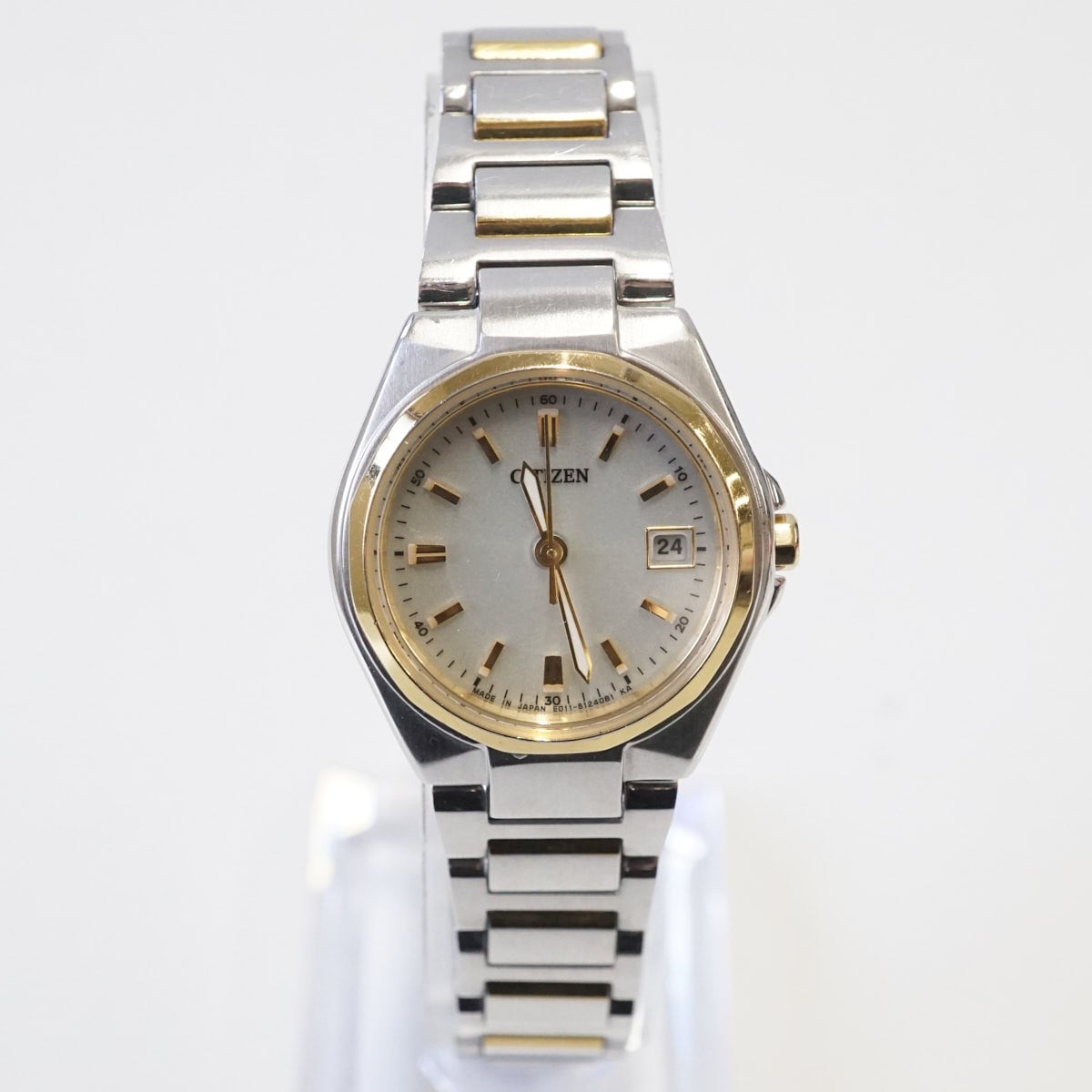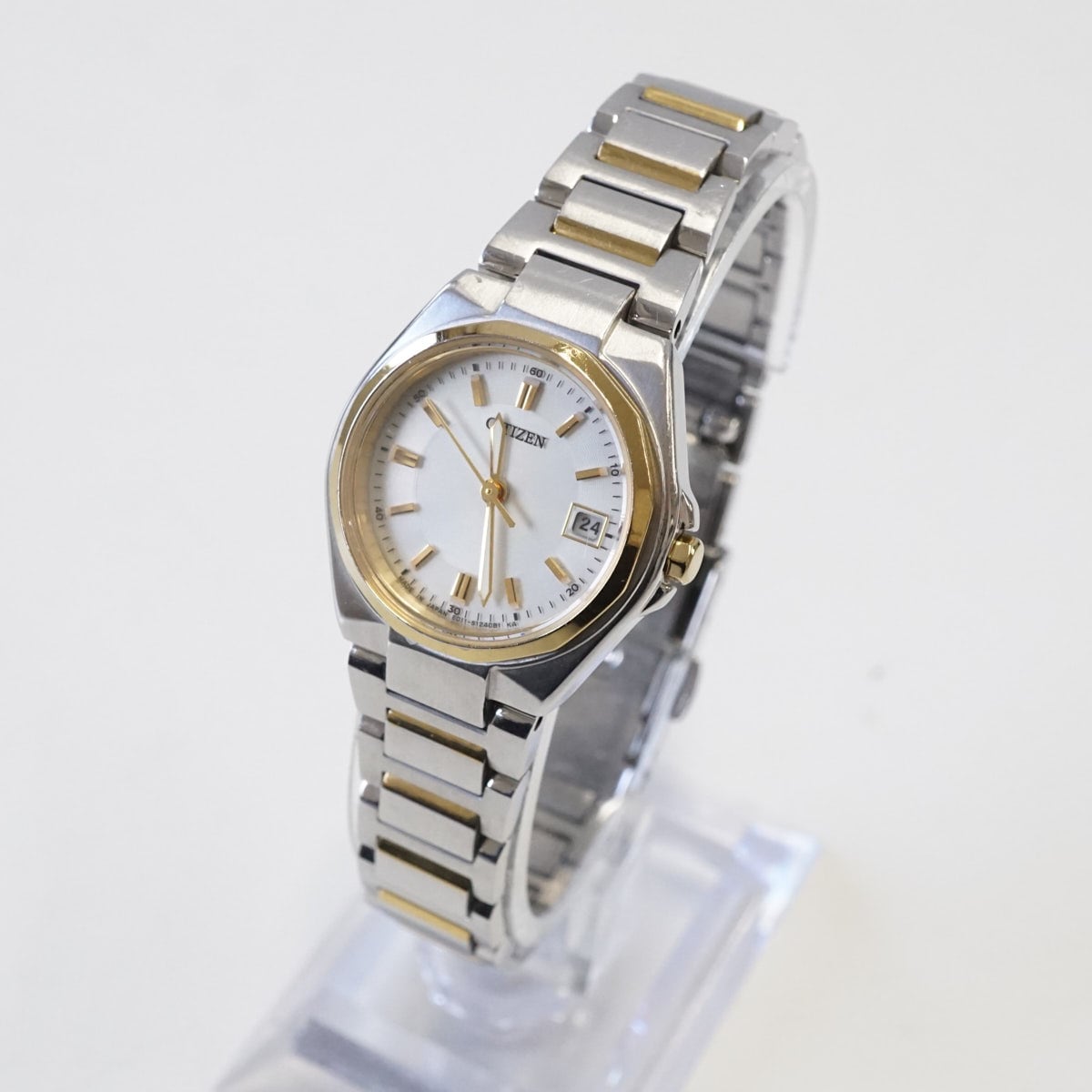CITIZEN シチズン 腕時計 USED美品 E011-S085799 エコドライブ ソーラー充電 アナログ レディース ゴールド シルバー 完動品 中古 X6602