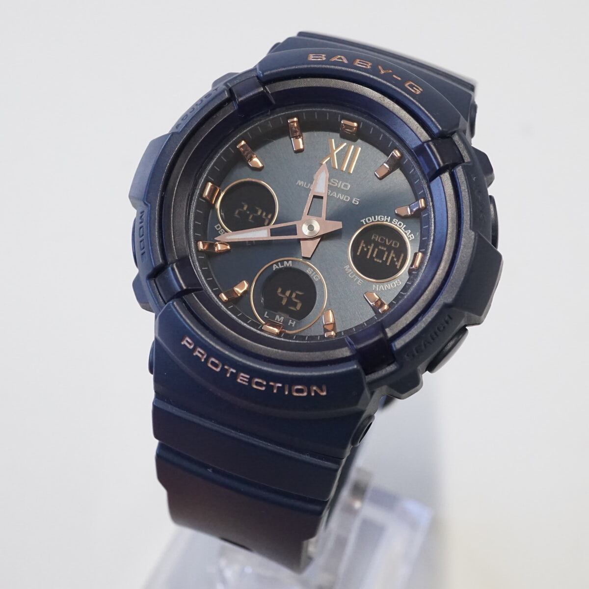 様々なコーディネートに取り入れやすいくすみ系のネイビーカラーがかわいいカシオのBaby-Gです。