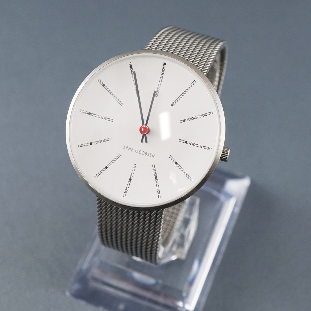 ARNE JACOBSEN アルネヤコブセン Bankers 34mm メッシュバンド 腕時計 USED超美品 シルバー 34ミリ 完動品 X6644