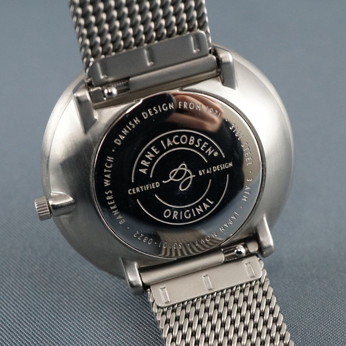人気ブランド「アルネヤコブセン」のメッシュバンド腕時計です。